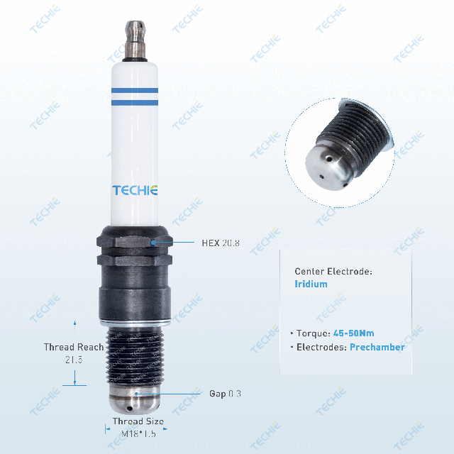 ● Thin walled copper core center electrode for outstanding heat dissipation and extended plug life.